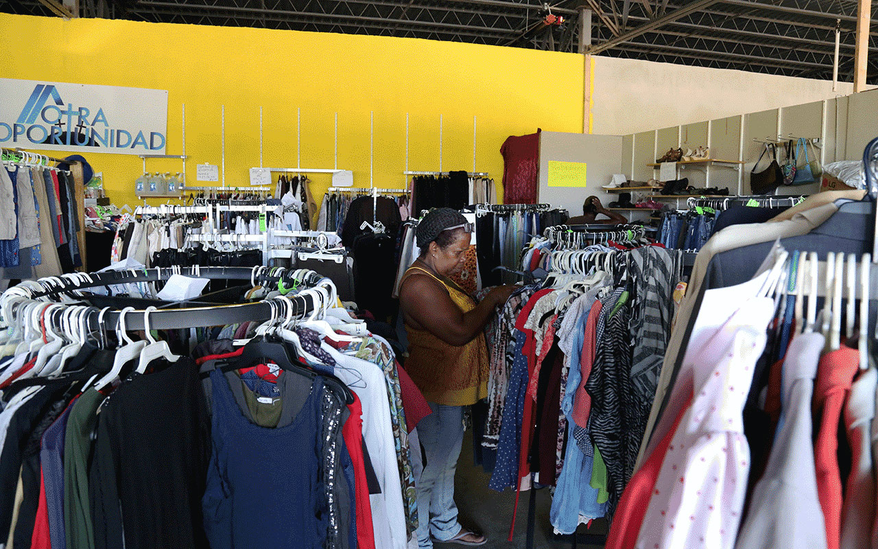 Residents of Loiza, a small town at the northeastern coast of Puerto Rico gather clothes and shoes for their family members a the “Otra Oportunidad” or “Another Opportunity” center run by the Adventist Church there, on Feb. 7, 2018. Image by Abel Márquez/IAD