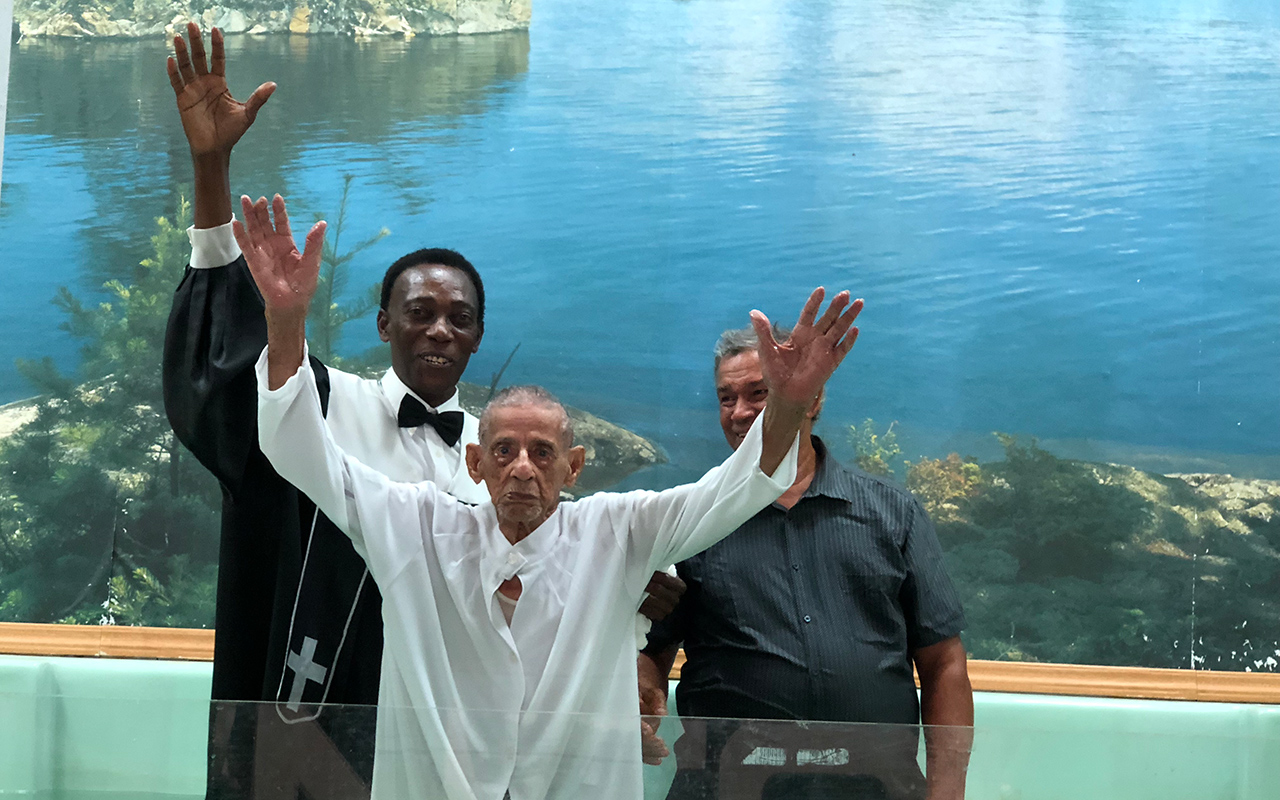 As he came out of the water, 103-year-old Carlos Ortíz García raised his hands in victory, rejoicing to have accepted Jesus as his personal Savior. Church members at the Youth Center of the East Puerto Rico Adventist Conference, in San Juan, Puerto Rico, rejoiced with him as they witnessed the baptismal ceremony on Aug. 11, 2018.