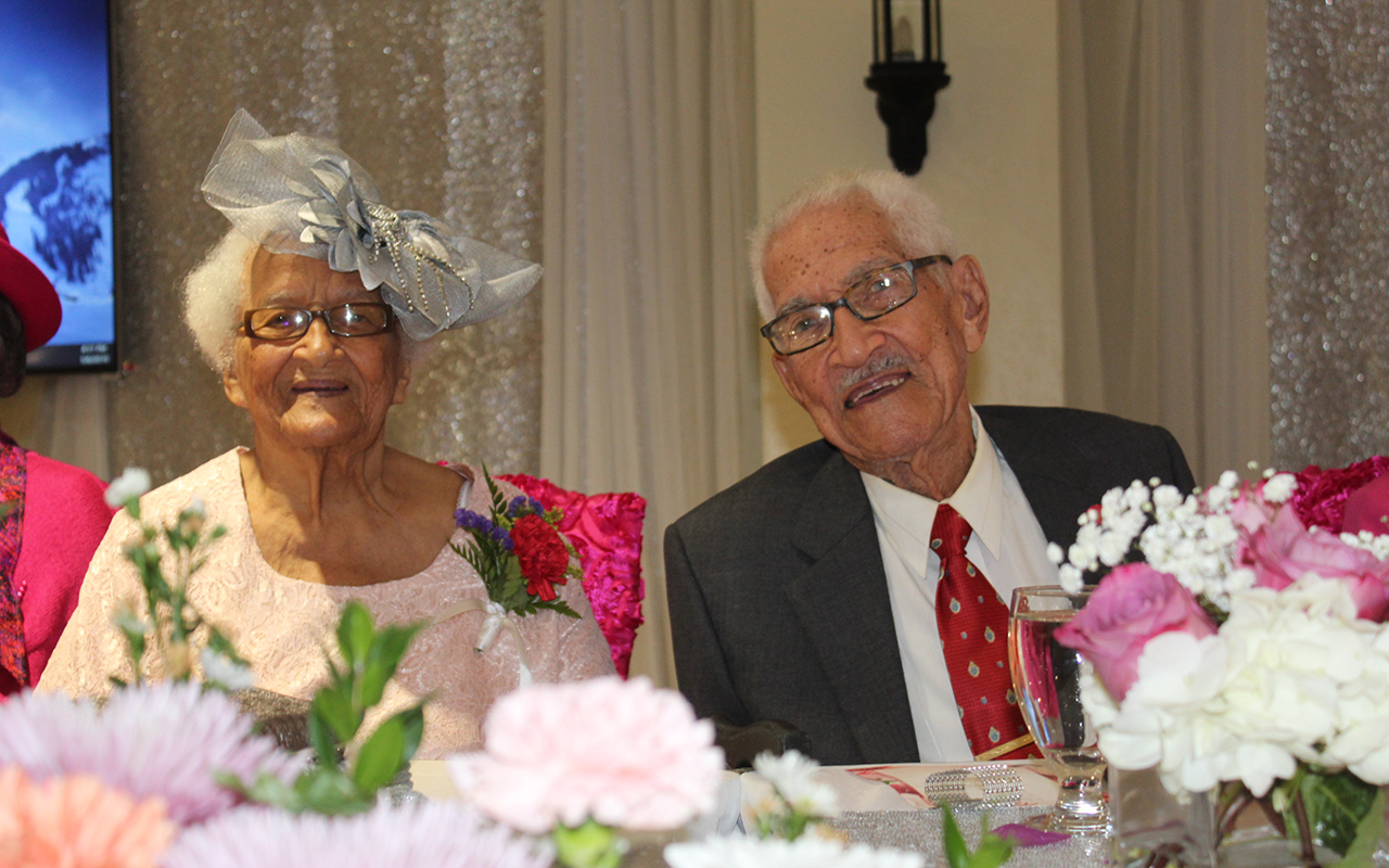 Elizabeth Moses is honored during a birthday celebration next to her 96-year-old brother Phil Glen Antonio with family and church members on Jan. 6, 2019, in Nassau, The Bahamas. Photo courtesy of Elizabeth Moses’ family.