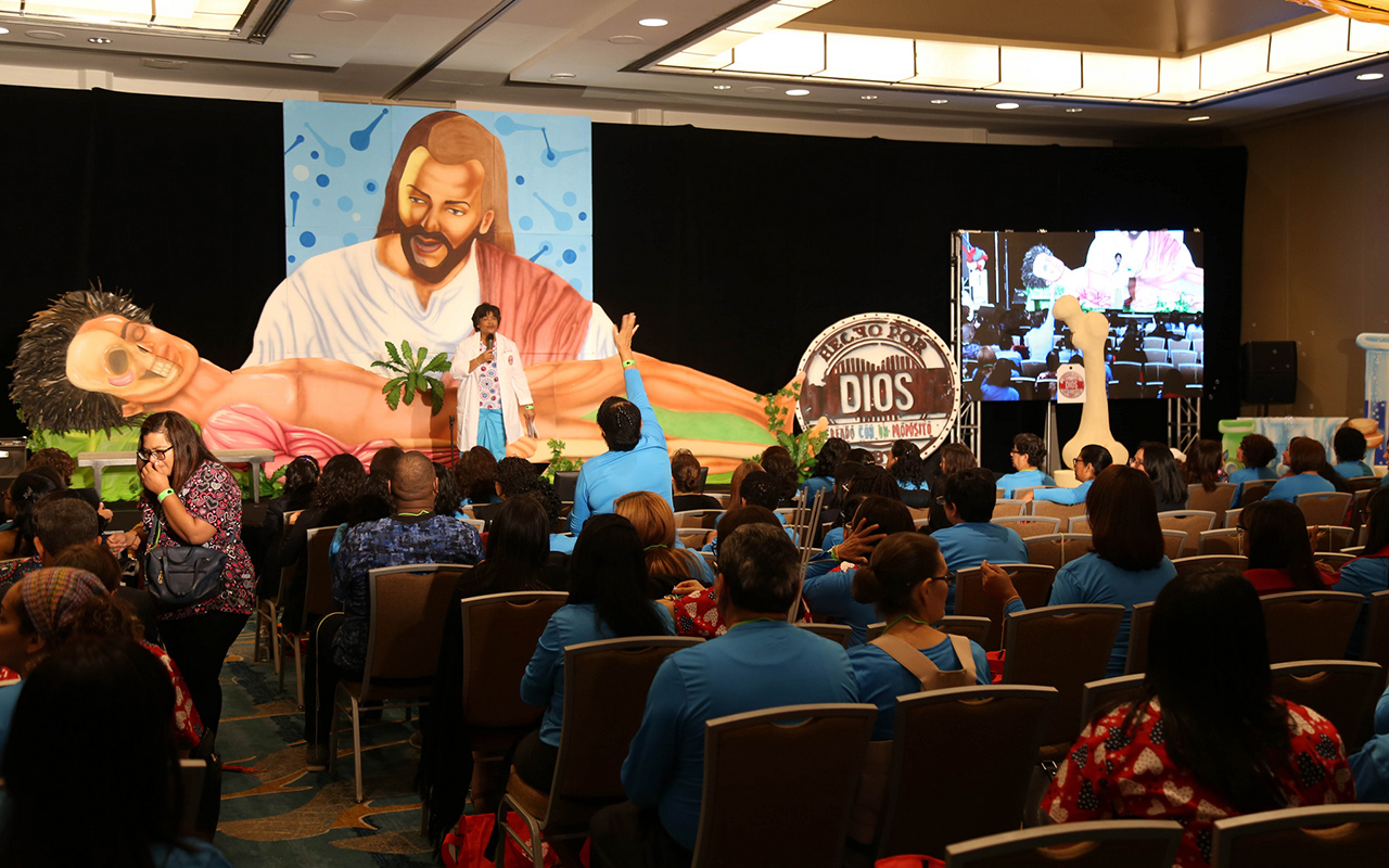 Dinorah Rivera, children and adolescent ministries director, speaks to the more than 200 regional leaders on the important ministry of teaching children about the purpose God has for each one. Photo by Libna Stevens/IAD