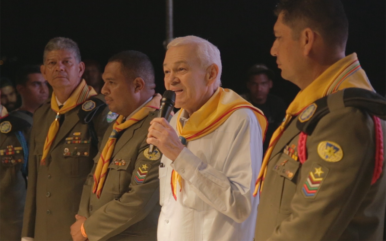 Pastor Julio Palacio (second from the right), president of the Adventist Church in West Venezuela, encouraged more than 6,700 pathfinders and master guides to commit their lives to serving God during a territory-wide camporee held in Barquisimeto, Venezuela, Apr. 15-20, 2019. It was one of the last large event that he spoke at before he passed away suddenly on May 16, 2019, Photo: West Venezuela Union