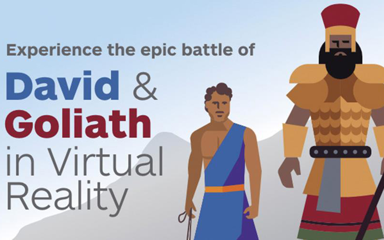 The VRE makes the story come alive. Daryl and other members of our team traveled to what archeologists believe to be the exact place where the battle was likely fought. Besides the spectacular VRE, we will have actual stones to show you from the stream where it is believed David grabbed his stones. We also have slinging stones from ancient Israel that may have been just like the kind that slingers like David would use in battle.