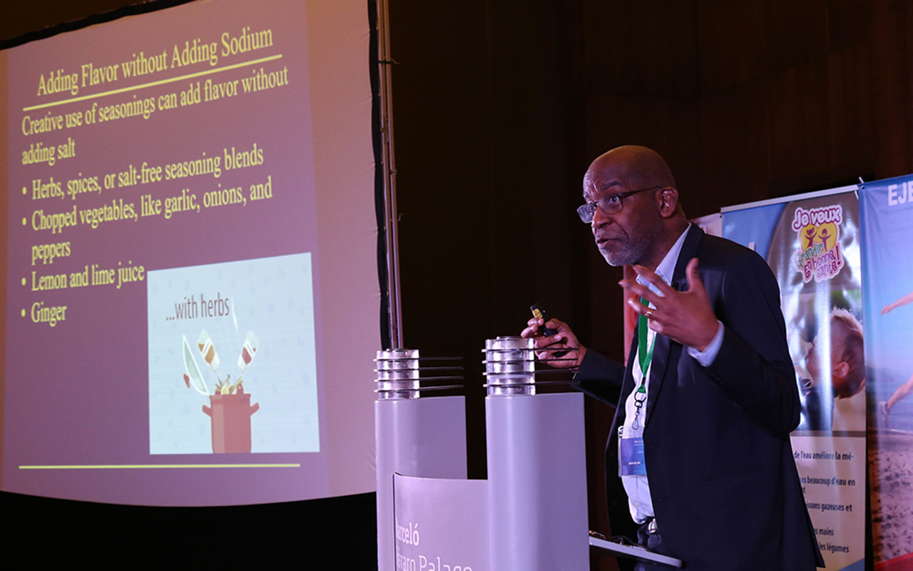 Dr. David Williams, PhD, MPH, Chair of the Department of Social and Behavioral Science at the Harvard T.H. Chan School of Public Health, in Boston, United States, encourages church health leaders to add flavor to foods without adding sodium [Photo: Libna Stevens/IAD]