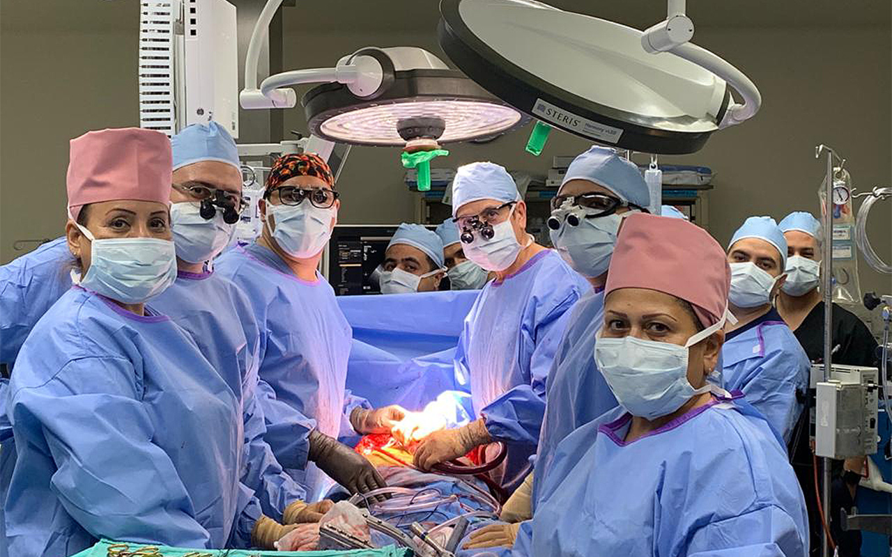 Dr. Manuel Wong (right), chief of surgery in charge of the pulmonary transplant program at Christus Muguerza High Specialty Hospital, leads the seven-hour surgery with a team of 21 specialists and medical staff. [Photo: Courtesy of Christus Muguerza Hospital de Alta Especialidad]