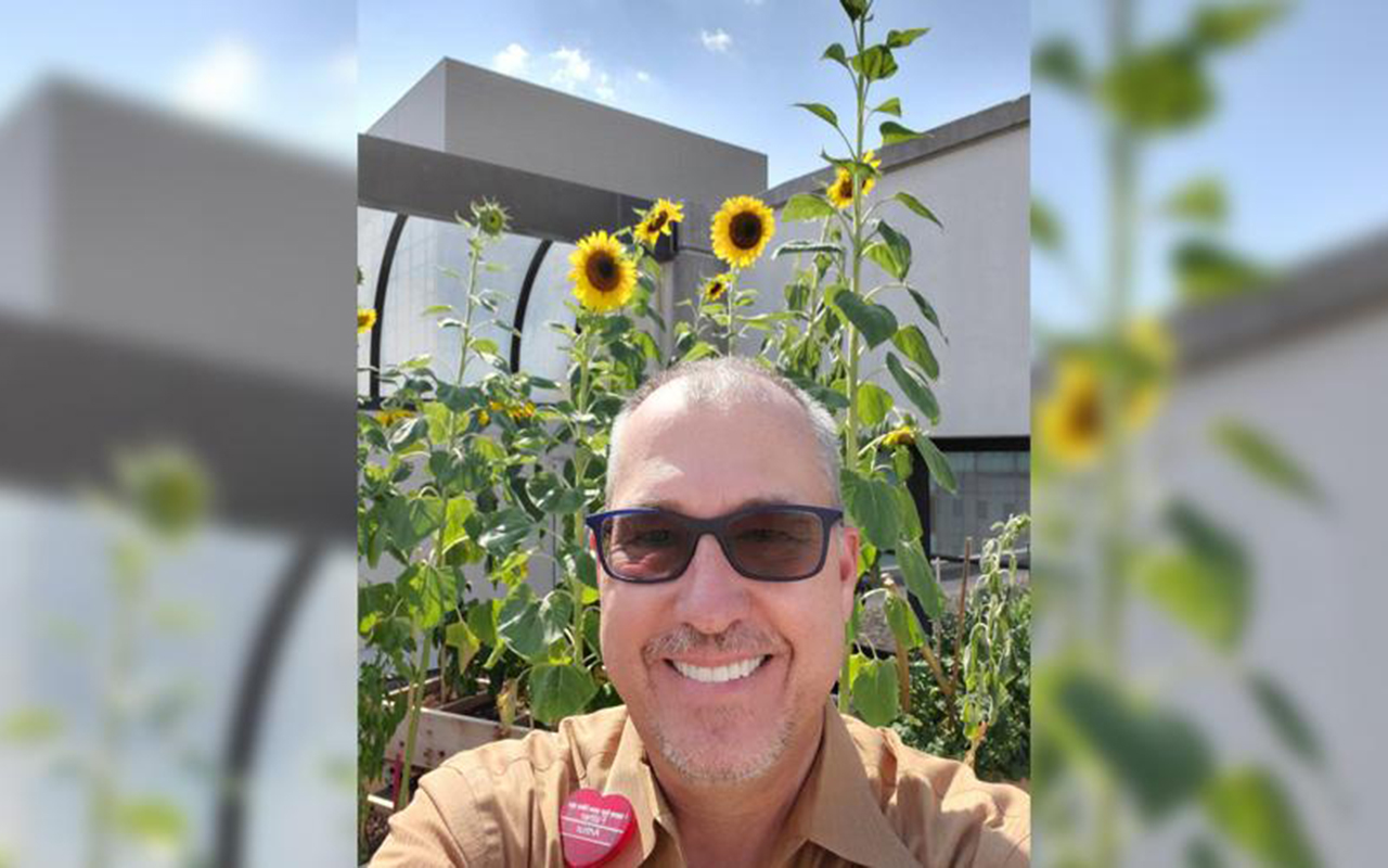 In 2020, Steve Achord created a rooftop garden at AdventHealth Shawnee Mission that produced an abundance of bell peppers, strawberries, green onions, cucumbers, kale, sunflowers, and more. [Photo: AdventHealth News]
