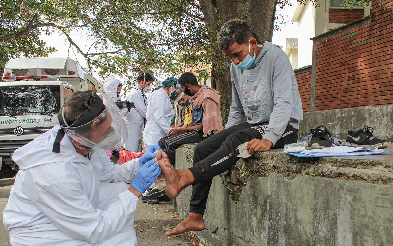 A Venezuelan migrant is being checked by a health professional after walking more than 195 kilometers from Cucuta bordering with Venezuela to Bucaramanga, in North Colombia. Thanks for an ongoing initiative by ADRA Colombia and USAID more than 115,000 persons have been assisted with medical assistance, food and settlements since 2018. [Photo: ADRA Colombia]