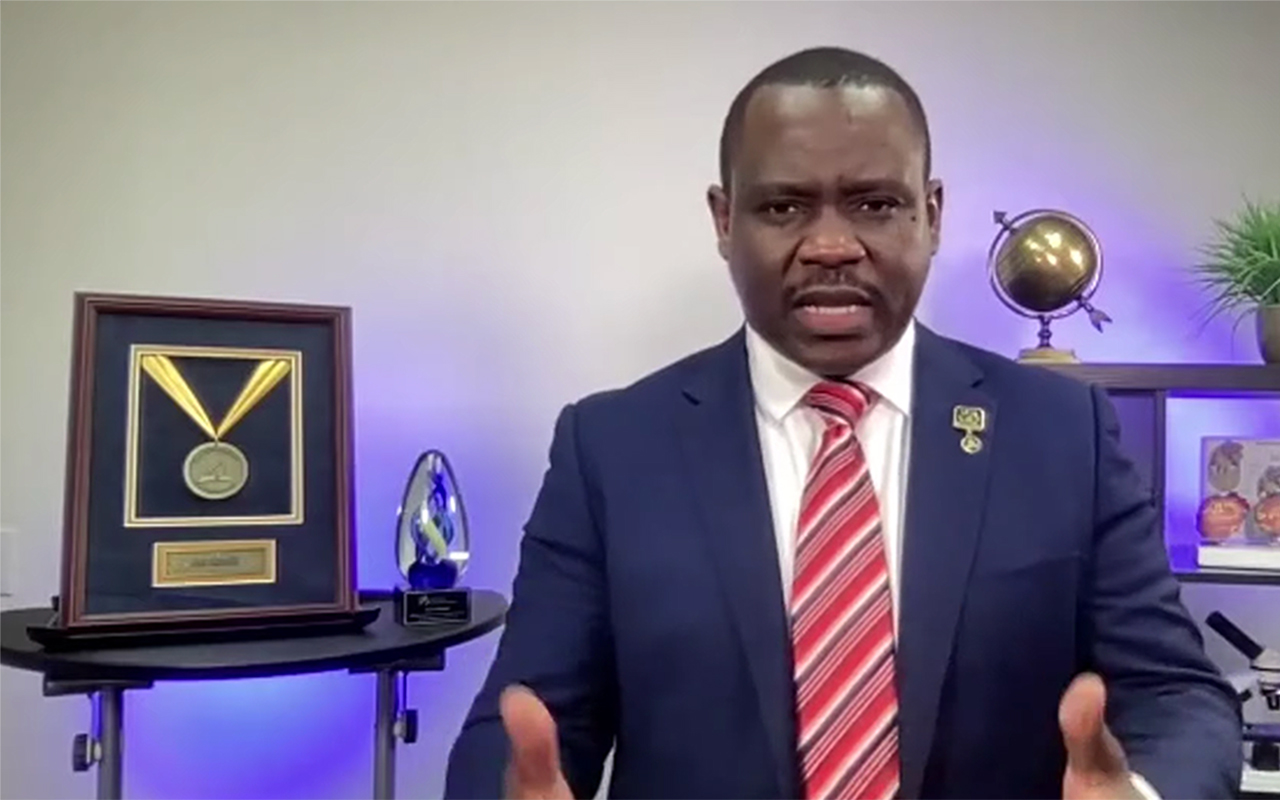 Franck Généus, M.D., health ministries director for the church in Inter-America, leads the first virtual territory-wide symposium for health professionals employed at Adventist hospitals and clinics across Inter-America, Apr. 7-8, 2022. [Photo: IAD Screenshot]