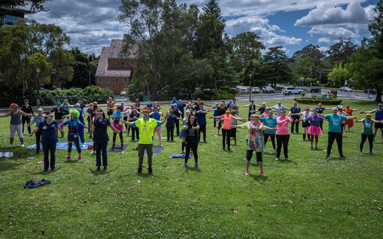 Sydney Adventist Hospital staff participated in a group workout on the front lawn of the health-care institution on November 16, 2022. [Photo: Adventist Record]