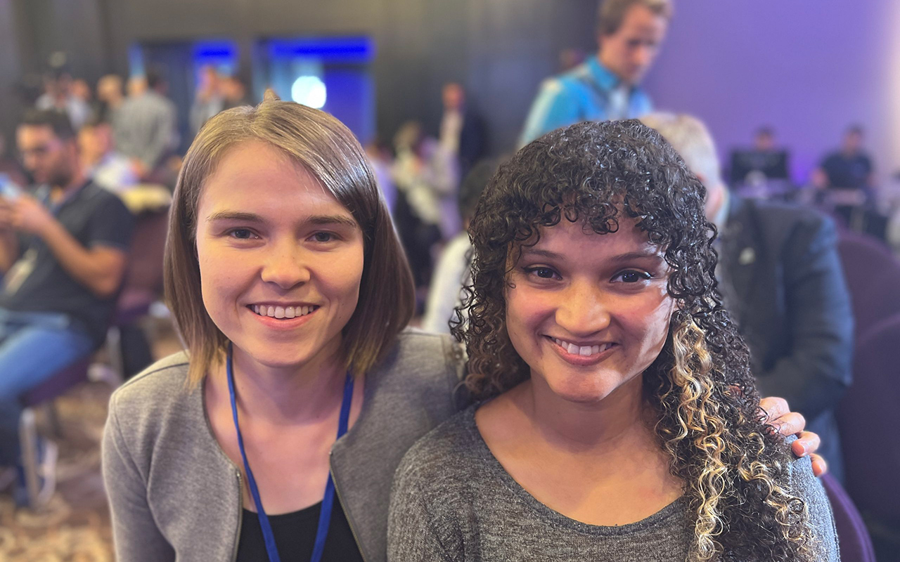 Left to right: graphic designer Frida Pascal-Rohken and TikToker Doreen Lohr (Creative Video Competition winner) at the GAIN conference in Bucharest, Romania, 2022. [Photo: Trans-European Division]
