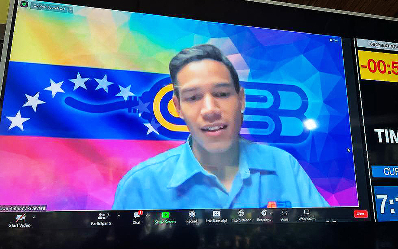Antony Guevara of the West Venezuela Union became this year’s Bible Connection top winner during the territory-wide competition hosted in Montego Bay, Jamaica, on Nov. 19, 2022. Guevara was one of five finalists who took part in the annual event from their home country. [Screenshot photo: Libna Stevens/IAD]