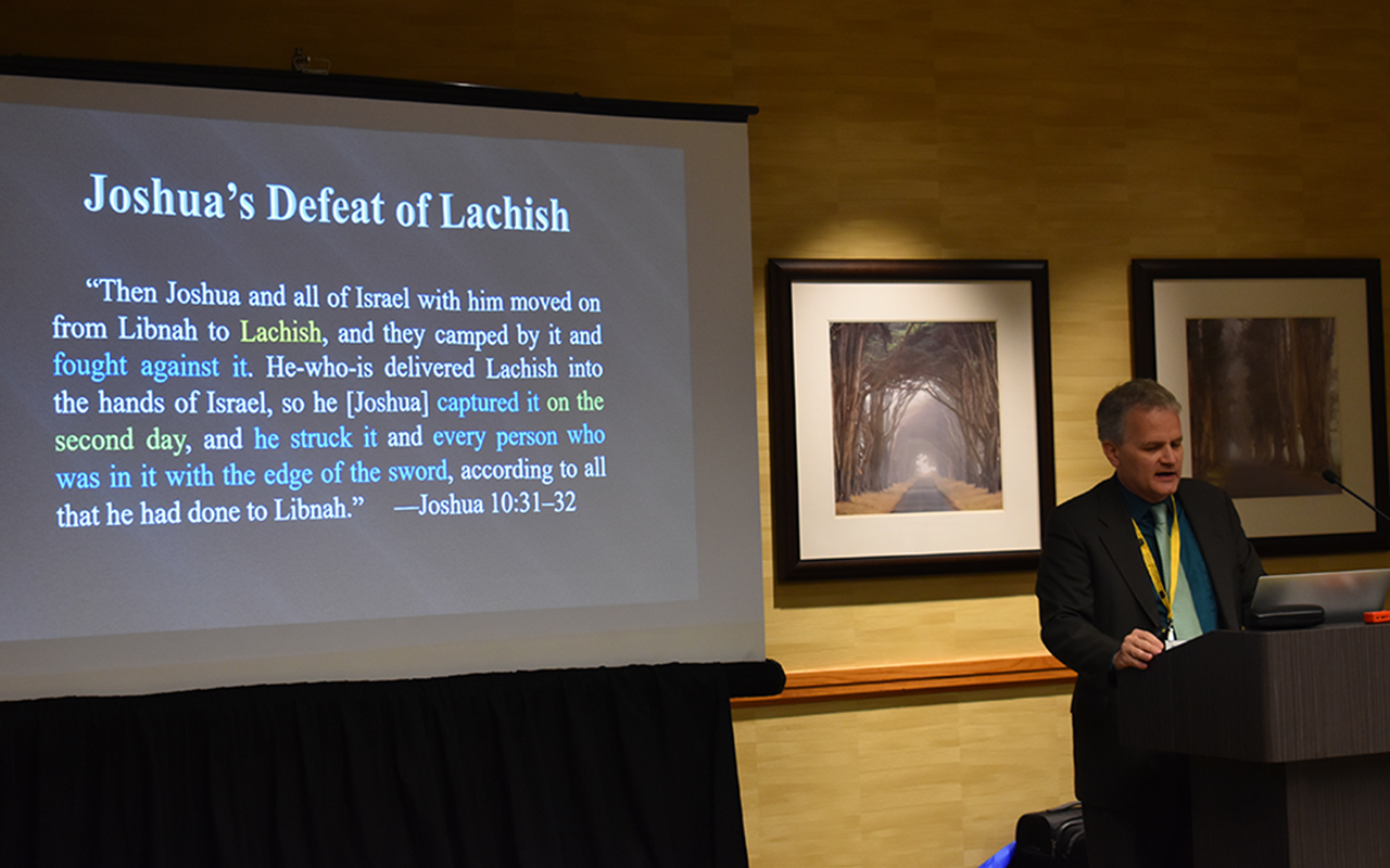 Brookes Bible College professor Douglas Petrovich said the inscription on a recently unearthed milk bowl fragment sheds light on Joshua’s conquest of Lachish. [Photo: Marcos Paseggi, Adventist Review]