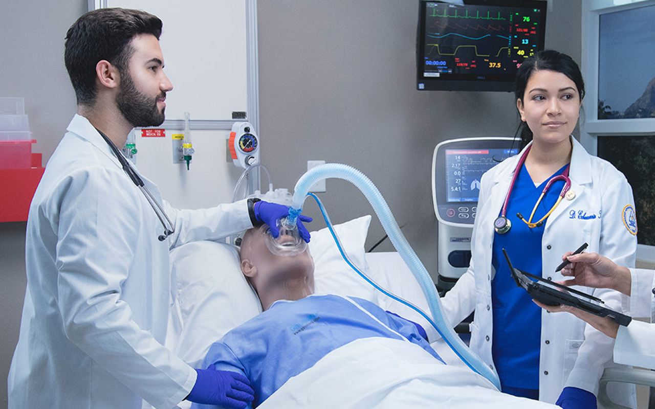 Students enrolled in the cardiopulmonary science program at Antillean Adventist University in Mayagüez, Puerto Rico, practice in the simulation center. [Photo: Comunicaciones Antillean]