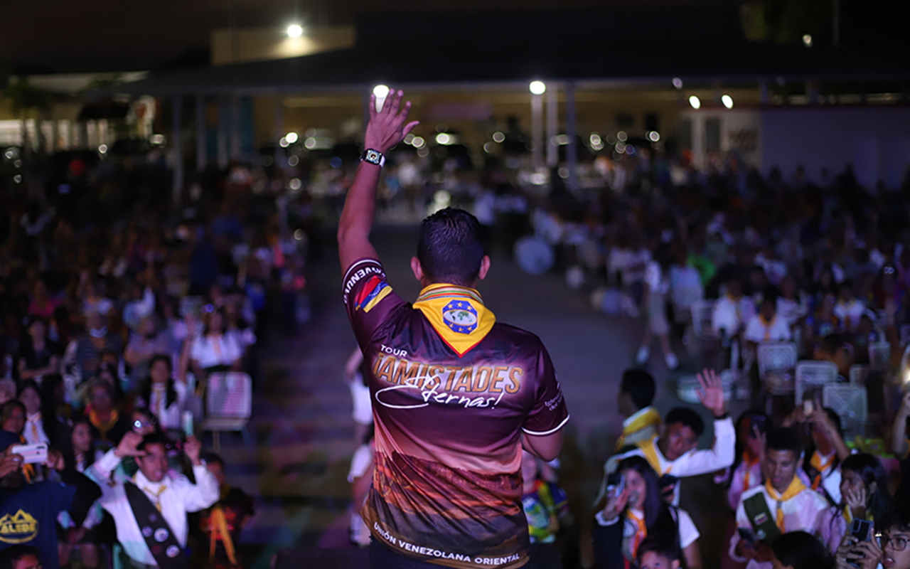 Pastor Andres Peralta, world pathfinder director of the Seventh-day Adventist Church, speaks to more than 1,500 of young people in Maturin, Monagas in Venezuela, Feb. 23, 2023. The event was part of what the church in East Venezuela Union called it “Everlasting Friendships” which sought to motivate young people to share Jesus across the region. [Photo: East Venezuela Conference]