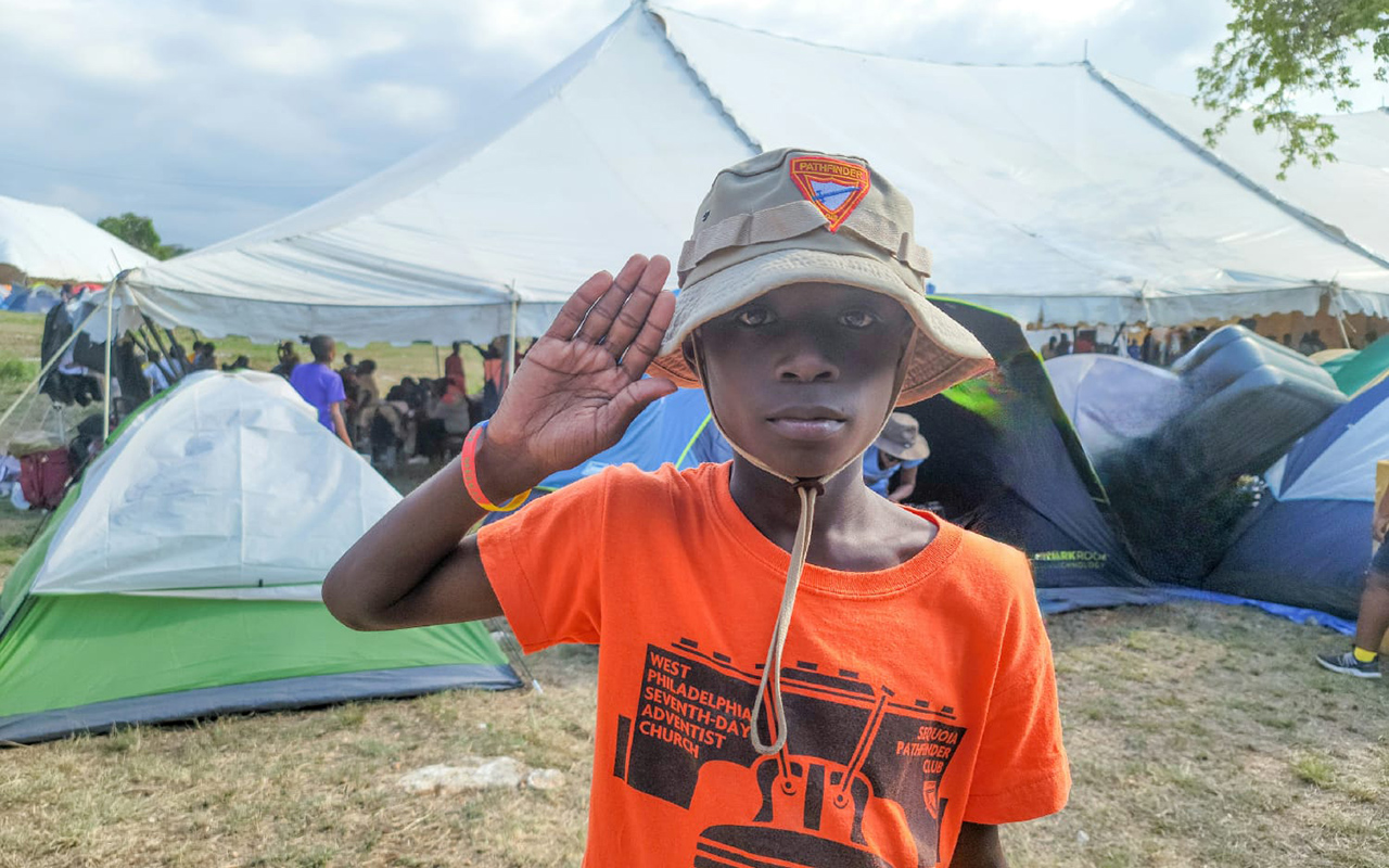 During last night’s opening ceremony of the 5th Inter American Division Pathfinder Camporee in Jamaica, Meshach, now 13 years old, participated in the drill and march display carrying a flag in the color party. He marched alongside other pathfinders and Master Guides from his conference including Joel Jumpp, his youth ministries director.