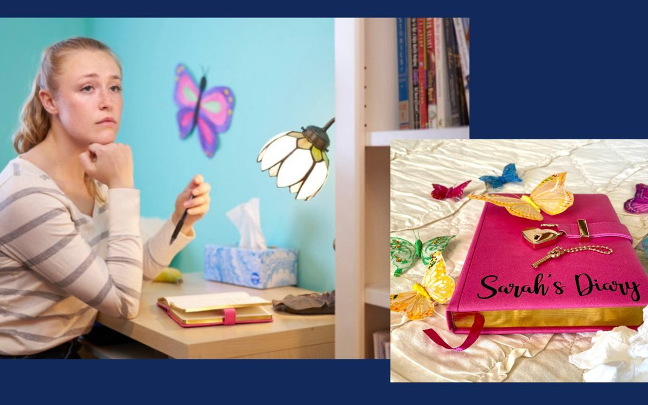 “Sarah” is portrayed by a professional actress (left). [Photo: Dave Sherwin]. Sarah’s diary (right). [Photo: Cheri Corder]