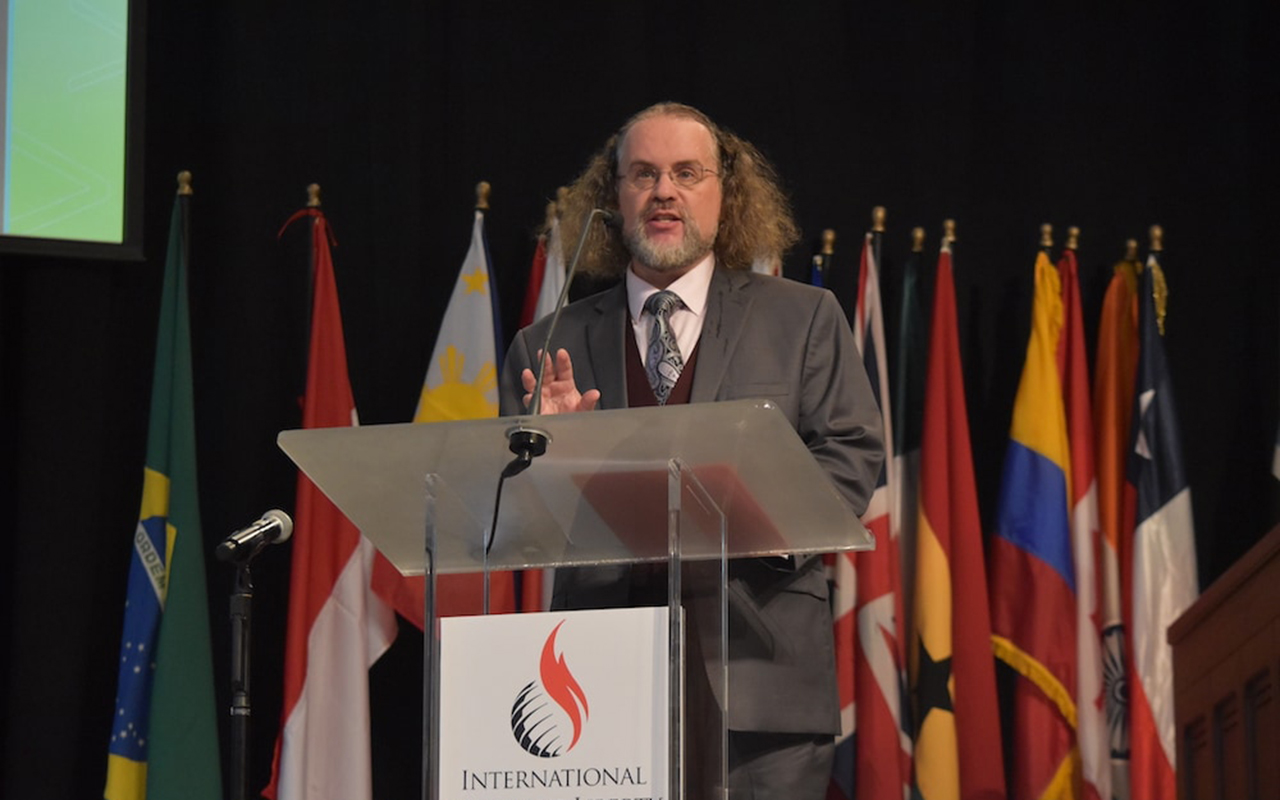 David Trim presents on the history of the International Religious Liberty Association at its 9th World Congress on August 22. [Photo: Marcos Paseggi, Adventist Review]