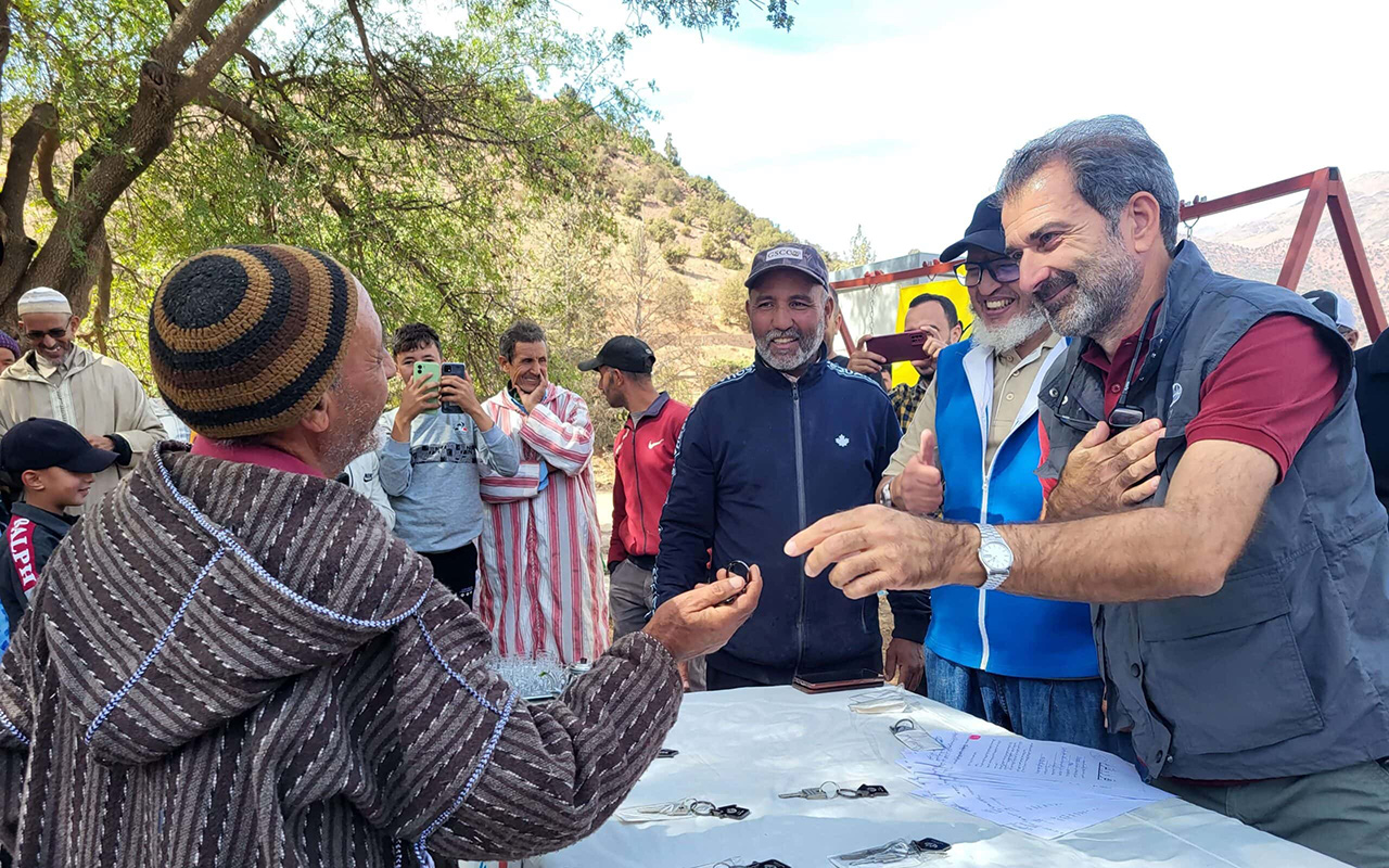 Families receive the keys to their new shelters in the Atlas Mountains, Morocco, October 28. [Photo: ADRA Spain]