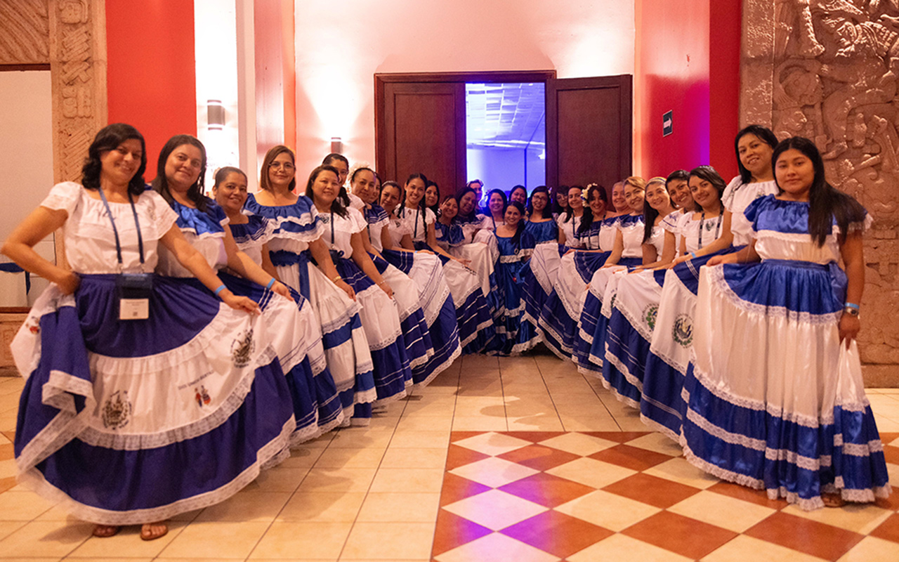 A group of pastor’s wives from the El Salvador delegation line up a main entrance during the opening ceremony of Inter-American Division’s ministerial retreat in Acajutla, on Sep. 16, 2024. More than 500 pastoral couples traveled from throughout Central America for the three-day spiritual, educational and recreational event. [Photo: Daniel Gallardo/IAD]