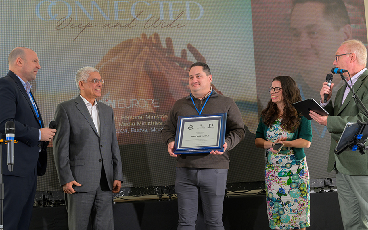 Marcos Paseggi, senior news correspondent for Adventist Review, received the Excellence in Communication Award at the Global Adventist Internet Network (GAiN) Europe conference held November 15-19 in Budva, Montenegro. The GAiN Europe conference is an annual professional gathering for European Adventist communicators and other church leaders.