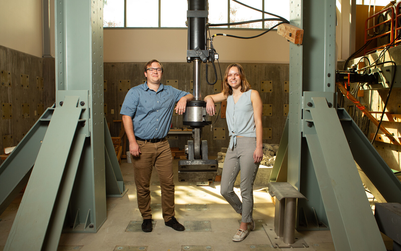 Jenna Fanselau and Reuben Herbel, Walla Walla University recently graduated civil engineering majors. [Photo: Chris Drake]