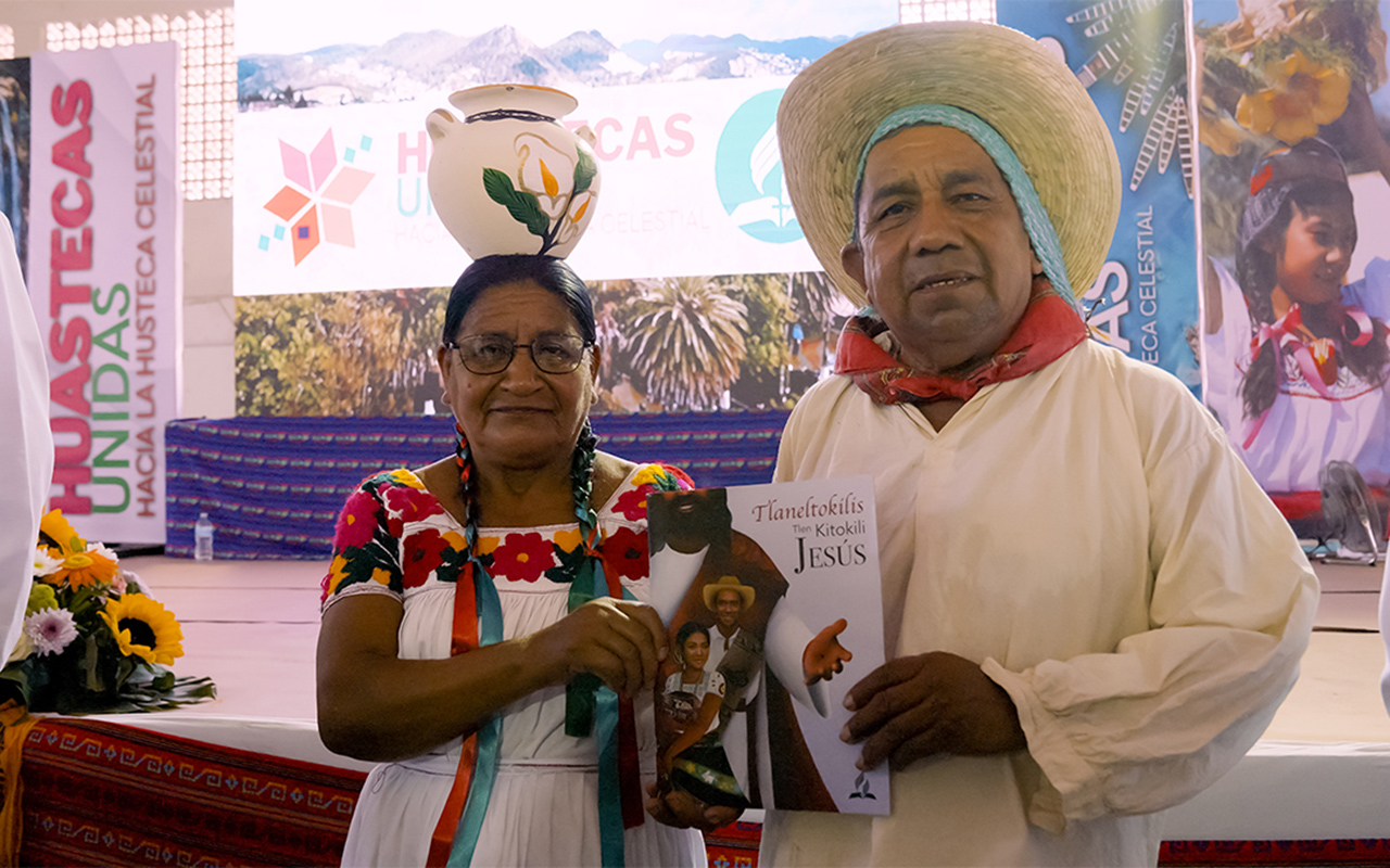 An Adventist couple holds newly released resources in the Nahuatl language during the historic Huastec Congress in El Higo, Veracruz, Mexico, on Mar. 29, 2025. The event brought together more than 1,000 members and believers, reaffirming the church’s Mission 2030 initiative to reach over 3 million Indigenous people across six states. [Photo:Franco Gutiérrez]