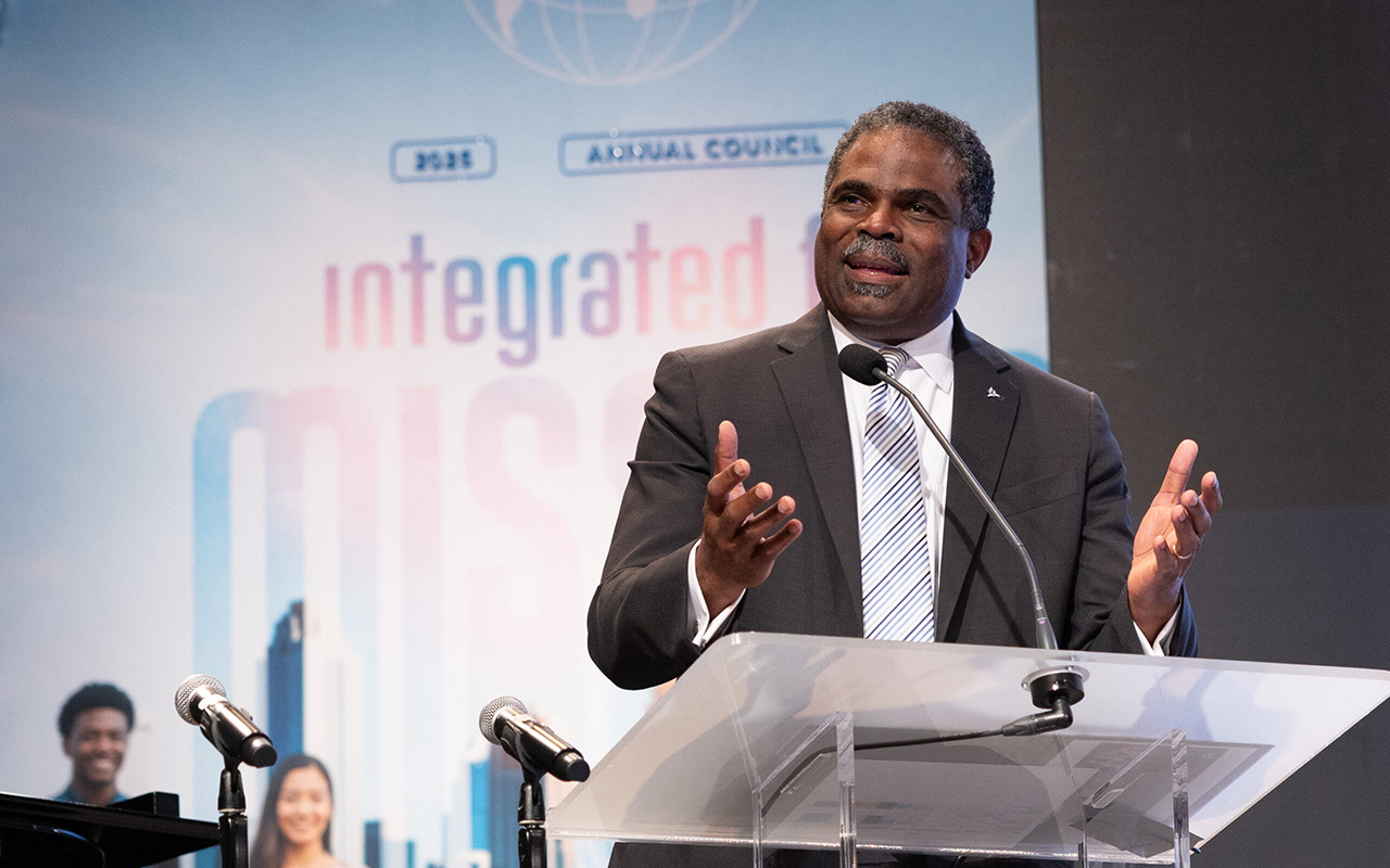 After introducing his team, Douglas introduced the three areas of emphasis for this quinquennium. The first point of emphasis he shared was strength. The idea here is that church entities should be operating a level of self-support and not dependent on appropriations. “It means being able to live within [its] means,” Douglas said, “not depending on appropriations to address operational expenses . . . but to make mission investments.” Douglas also called on church leaders to be “careful as we look at our growth, to not be so quick to grow our administrative entities” but to use an increasing amount of funds “for mission, not machinery.”