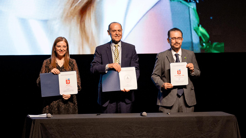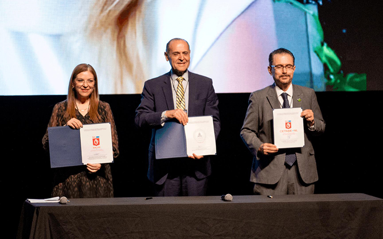From left: Dr. Mirtala Cavazos, Deputy Secretary for Disease Prevention and Control; Dr. Ismael Castillo, President of Montemorelos University; and Dr. Homero Arturo Zapata, Director of the Transplant Center of Nuevo León. [Photo: Lisandra Vicente/UM]