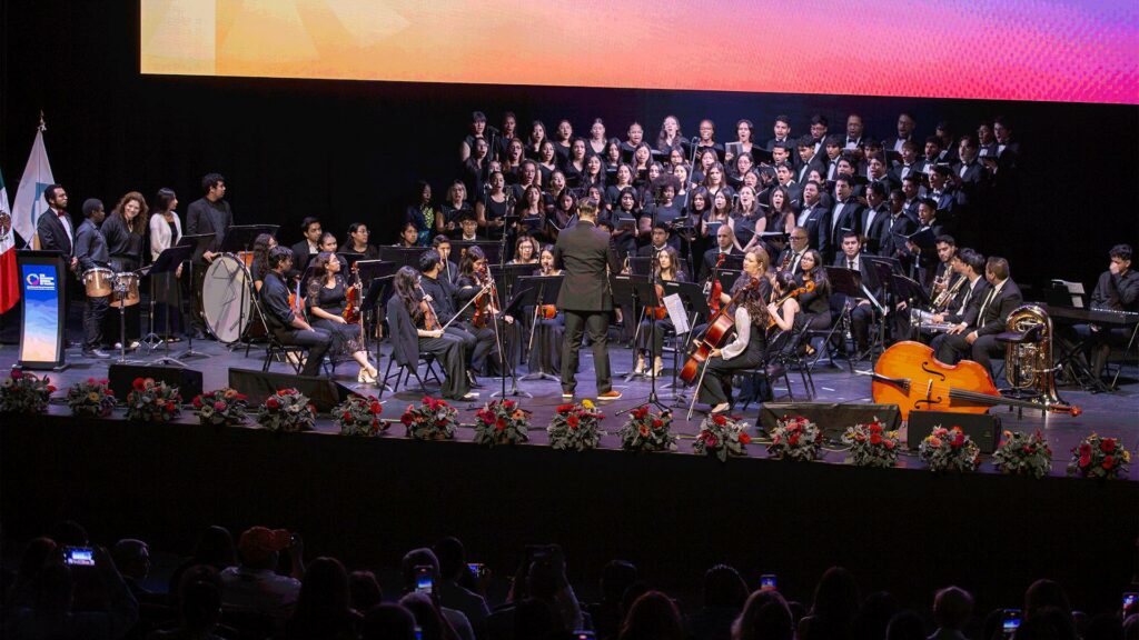 The University Orchestra and the Handel Choir, directed by maestros Pavel Semanivsky and Óscar Castillo, performed at the 2025 World Values Summit. [Photo: Montemorelos University / Lisandra Vicente]