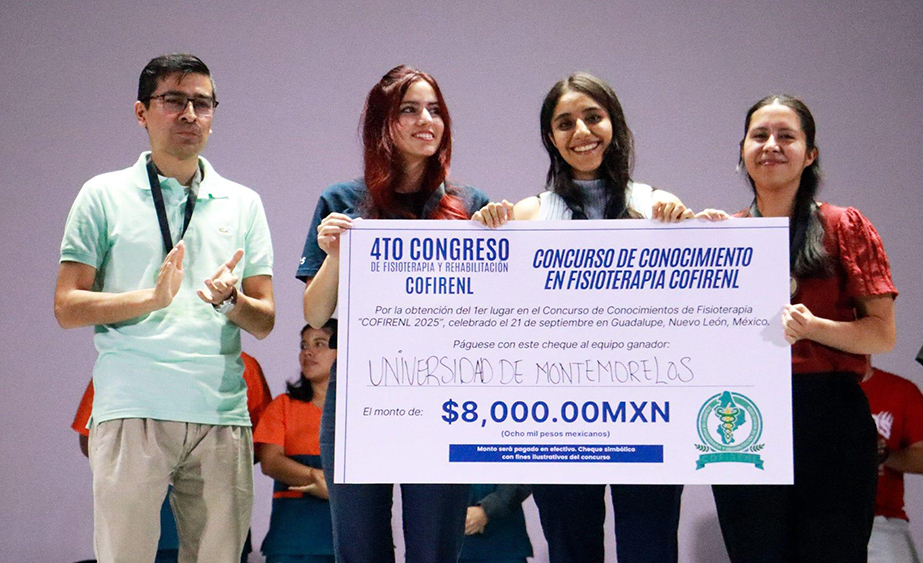 A team from Montemorelos University won first place for the second consecutive year in the State Physiotherapy Knowledge Contest, “Fisiotrón,” organized by the Nuevo León College of Physiotherapy and Rehabilitation (COFIRENL). The 2025 edition focused on traumatology and orthopedics and was held during the 4th Congress of Physiotherapy and Rehabilitation, September 20–21, at the Teatro Sara García in Guadalupe, Nuevo León, Mexico.