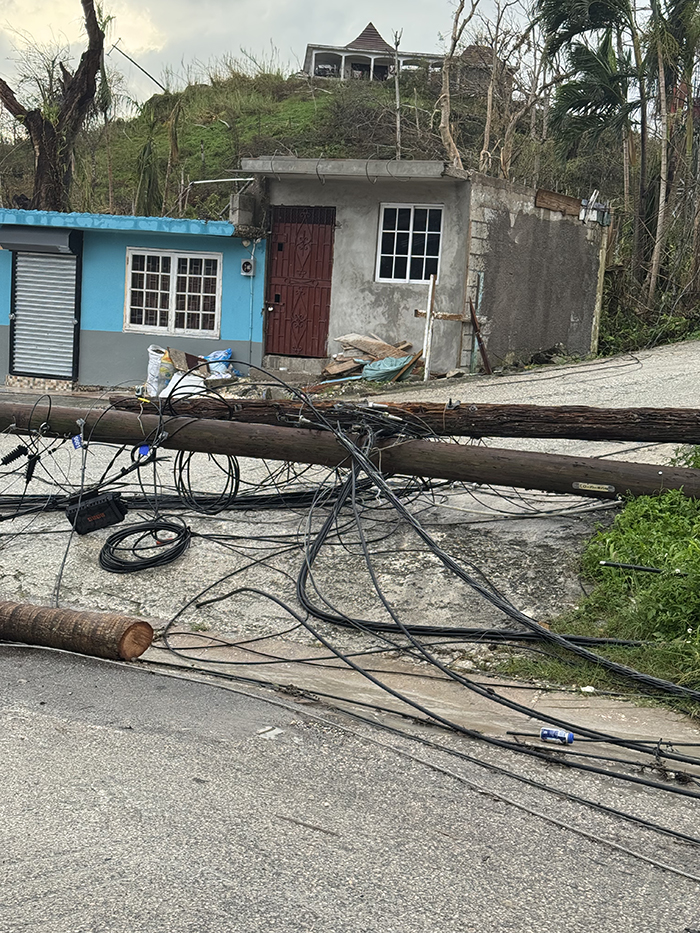 Power lines lie strewn across the western region of Jamaica after Hurricane Melissa battered the area on Oct. 28, 2025. [Photo: Libna Stevens/IAD]
