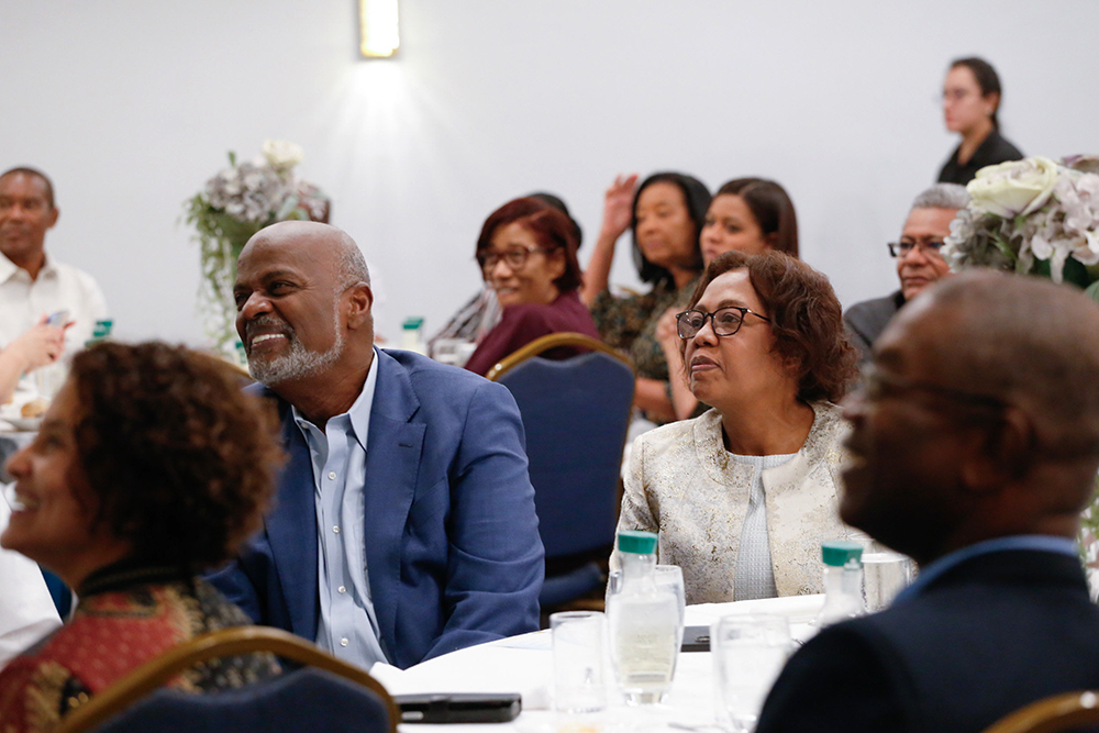 Former IAD President Pastor Elie Henry and wife Ketlie listen as leaders recount moments of mentorship, compassion, and spiritual influence that marked his decades of service in Inter-America, during a special ceremony in Miami, Florida, United STates on Nov. 9, 2025. [Photo: iadmedia]