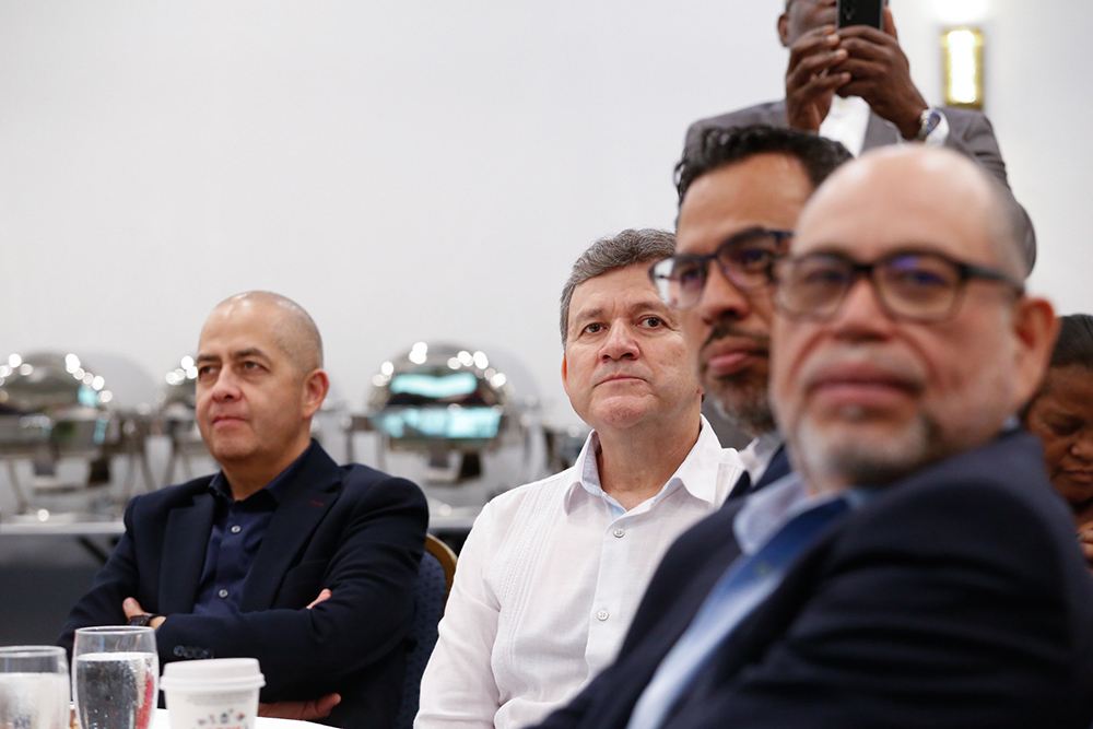 Pastor Elie Henry shares heartfelt words of gratitude, thanking colleagues, friends, and staff for their support throughout his years of service in Inter-America. [Photo: Keila Trejo/IAD]