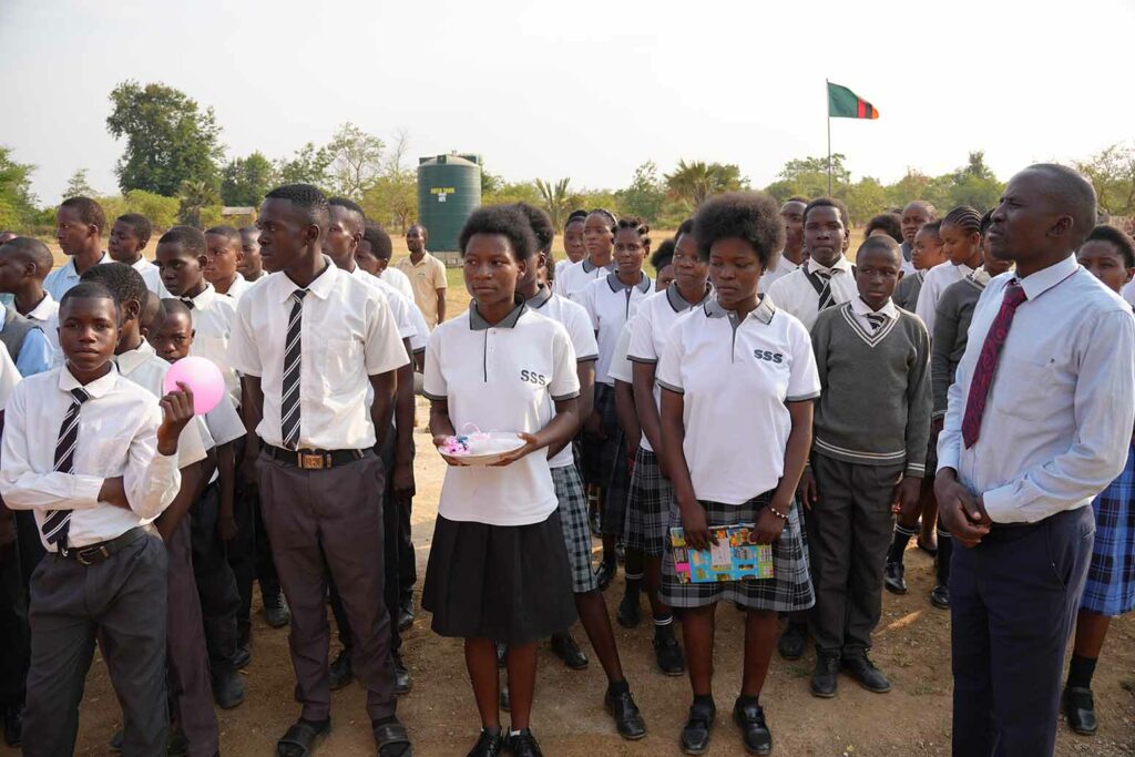 Secondary school students attend the ceremony during which Maranatha leaders handed over the keys of the new block of classrooms at Sala Mission School in Zambia. [Photo: Marcos Paseggi, Adventist Review]