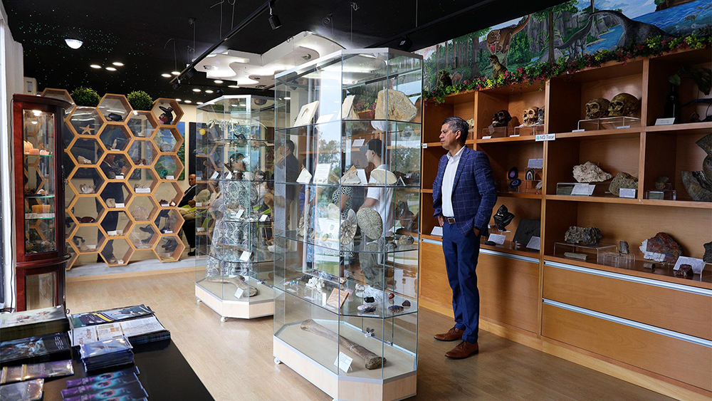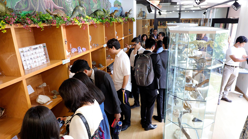 The newly inaugurated center includes a permanent exhibition of geological samples, fossils, minerals, and interpretive materials designed to help students and visitors explore the natural world through a biblical lens. The interior design evokes the heavens—complete with constellations—while a life-sized triceratops sculpture crafted by Montemorelos Univeristy Visual Arts student Fred Córdoba serves as a striking welcome piece that blends science, art, and faith.