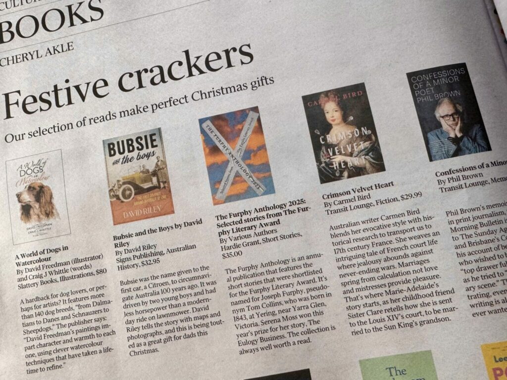 Bubsie and the Boys was featured among prominent national and international authors in the national newspaper The Weekend Australian as one of their gift recommendations for Christmas 2025.