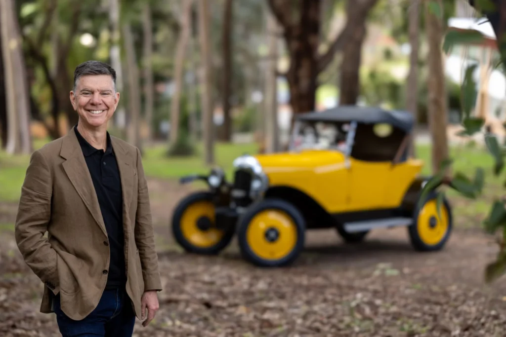 David Riley with his “Bubsie II,” the same model 1923 Citroën as the first car to drive around Australia.