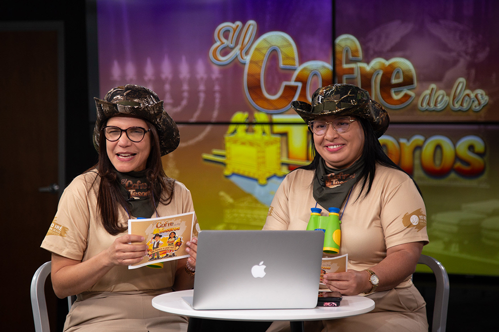 Kenia Almanzar (left) of the Dominican Union and Gloria Ruiz (right) of the Nicaragua Union, both children and adolescent ministries leaders, serve as hosts during the live-streamed Vacation Bible Experience workshop program. [Photo: Libna Stevens/IAD]