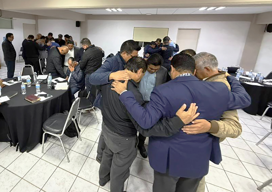 Pastors pray together during a training session focused on strengthening community outreach programs in their local congregations. [Photo: Courtesy of Ignacio Goya]