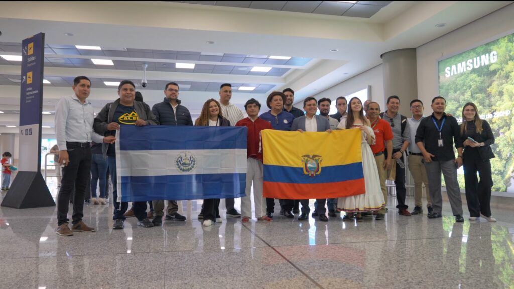 The El Salvador delegation arrives at the airport in Quito, Ecuador. [Photo: Diego Muñoz]