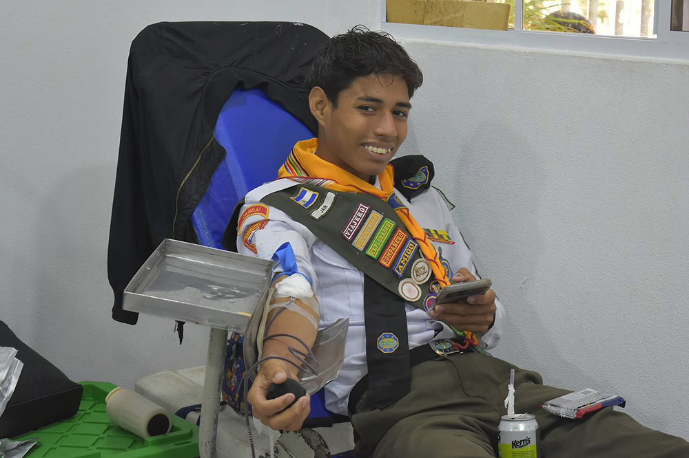 A Pathfinder in uniform donates blood during a community outreach initiative that mobilized hundreds of members—young and old—to participate in blood drives across Nicaragua. [Photo: Nicaragua Union]