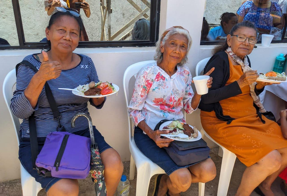 Socorro María Úbeda, M.D., (center), administrator of Nicaragua Adventist Hospital, speaks with leaders during a community outreach in Puerto Cabezas led by the church and the Nicaragua Adventist Hospital. [Photo: Nicaragua Union]