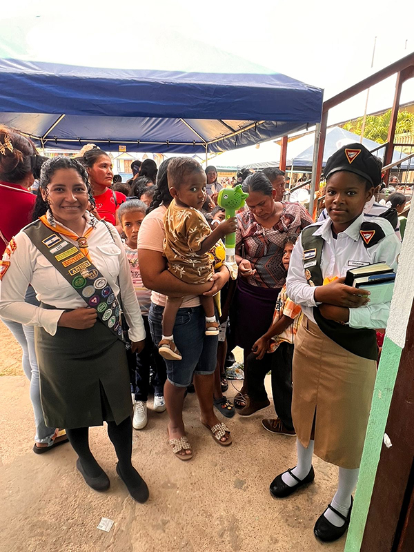 Pathfinder volunteers take part in a toy distribution in Bilwi, Puerto Cabezas, where 1,500 toys were presented to children and adolescents through a collaborative outreach led by youth, family, women’s, and health ministries. [Photo: Nicaragua Union]