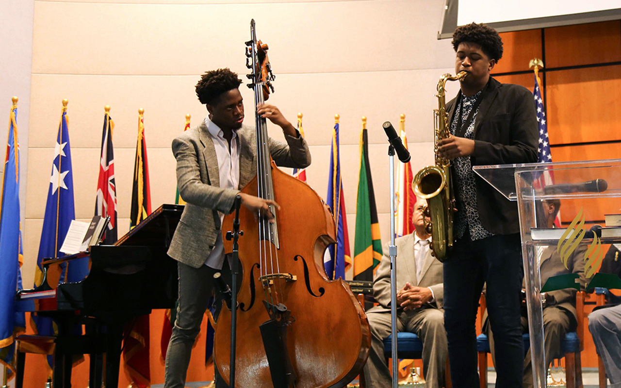 El personal de la DIA disfruta de un programa musical durante el devocional especial. Imagen de Libna Stevens/DIA