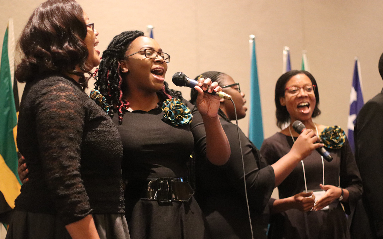 El equipo de alabanzas de ASi Bahamas coordinó momentos de adoración, durante el segundo día de la convención de este año de ASi Interamérica en Nassau, Bahamas, el 22 de agosto. Los plenarios y los talleres han sido intercalados con sesiones de adoración y oración. Fotografía: Asociación Sur de Bahamas