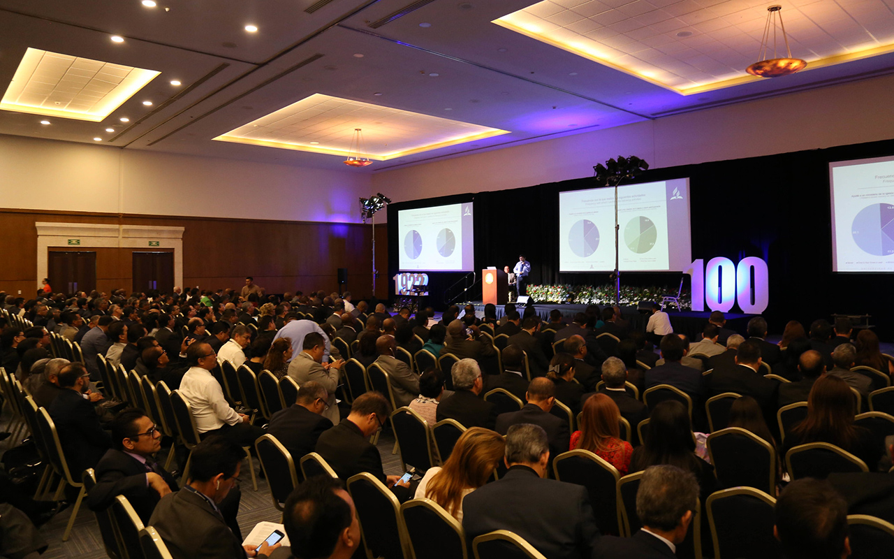 Administradores adventistas del séptimo día de todo el territorio de la División Interamericana dan un vistazo a los resultados de una encuesta tomados de las respuestas de los miembros de iglesias locales en relación a creencias y prácticas de los adventistas del séptimo día. Esta encuesta fue la introducción a una serie de reuniones con 300 dirigentes de iglesia para estudiar y definir el futuro de la iglesia en Interamérica, celebradas en Cancún, México, del 6 al 11 de septiembre de 2019. Imagen: Abel Márquez/DIA