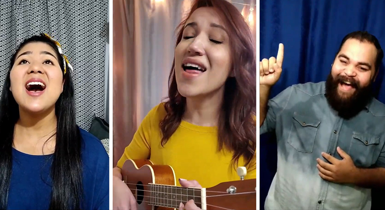 Un grupo de la Unión Occidental de Venezuela canta durante el programa de Sociedad de Jóvenes Adventistas celebrado el 16 de mayo de 2020. [Imagen: División Interamericana]