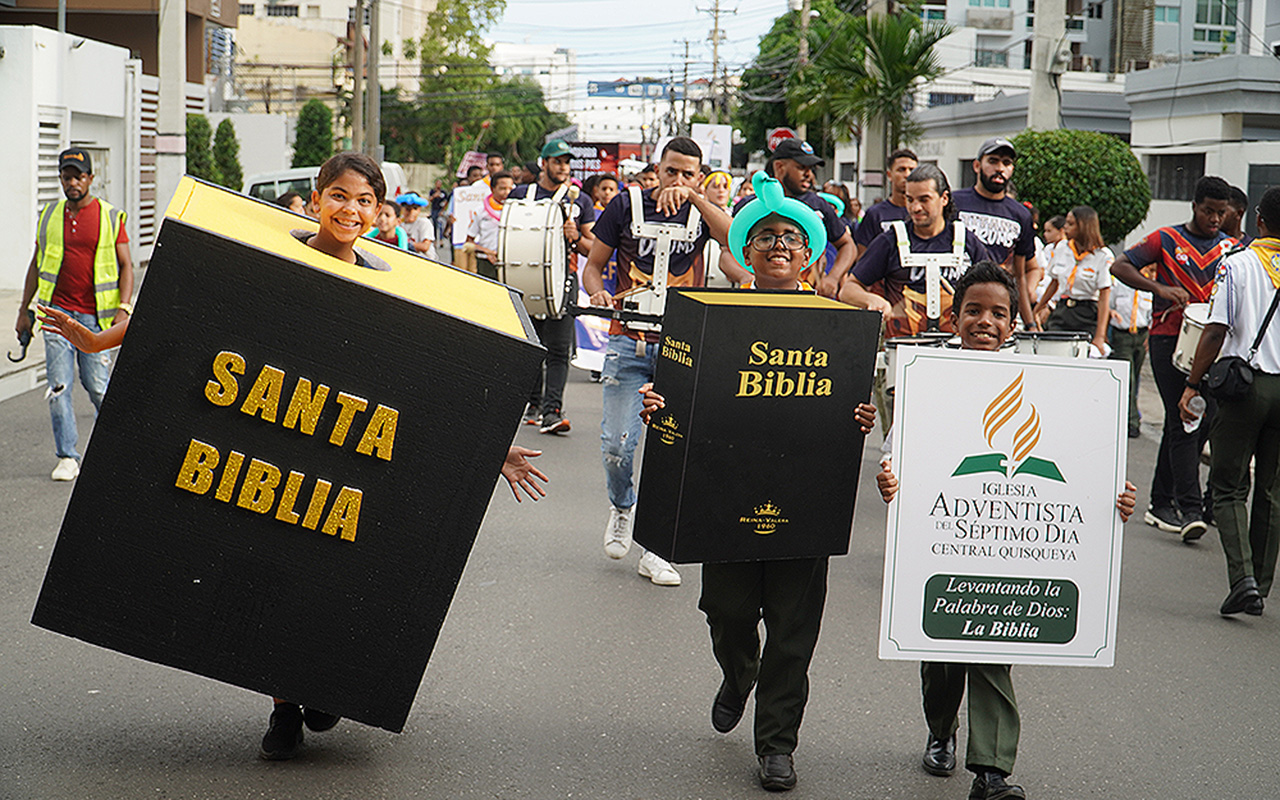 Cientos de miembros de iglesia de la iglesia adventista de Central Quisqueya en Santo Domingo, República Dominicana, marcharon hace poco al ritmo de redoblantes, vistiendo ropas bíblicas y portando carteles y pancartas que destacaban la necesidad de la Palabra de Dios. La marcha atrajo más de trescientos miembros y sus amigos para marcar un impacto en una comunidad seleccionada de más de trescientas mil personas con Biblias, revistas y libros misioneros el pasado 17 de septiembre de 2022, para conmemorar el énfasis anual en la Biblia durante el mes de septiembre.