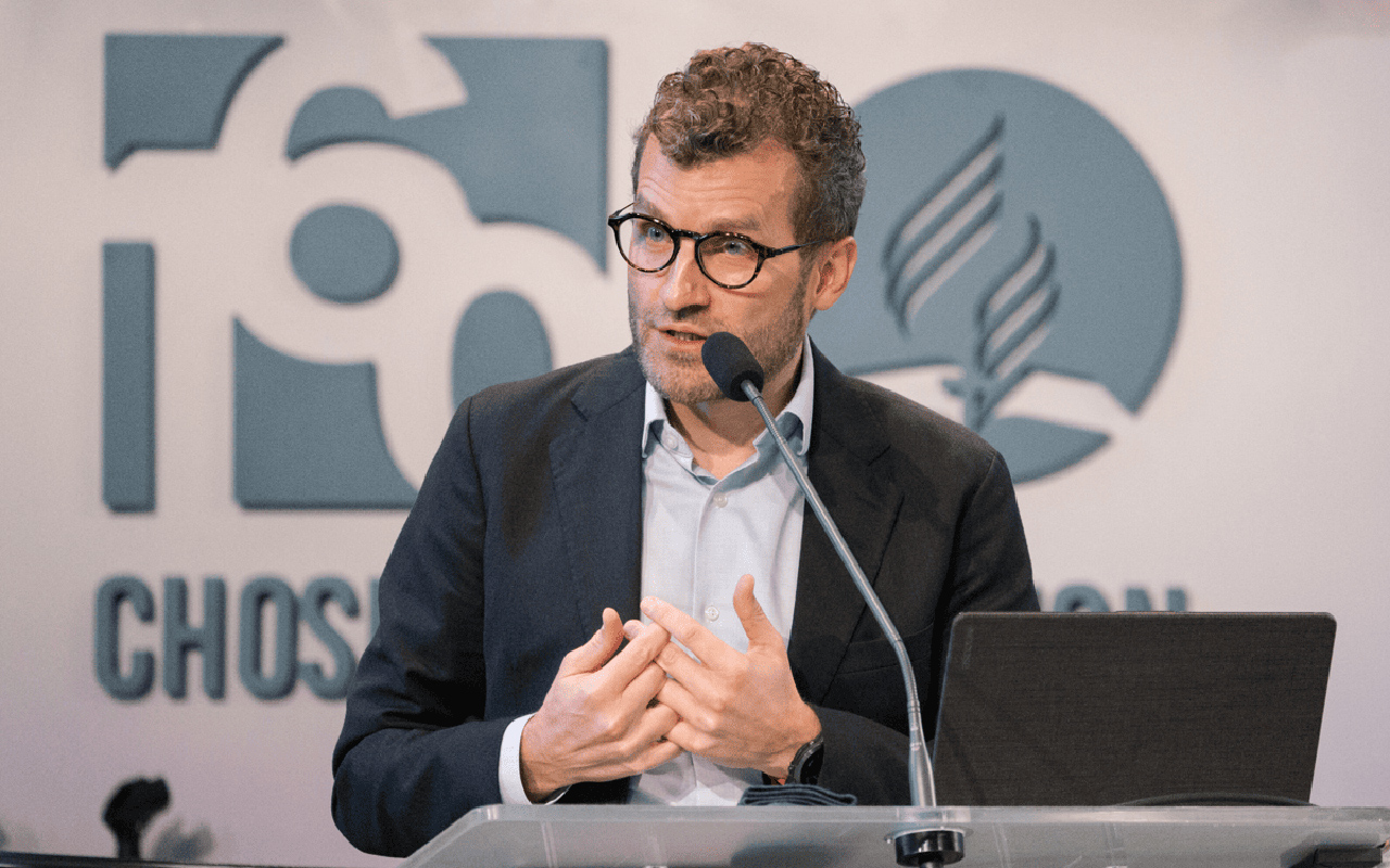 Torben Bergland, director asociado de Ministerio Adventista de Salud, presenta la iniciativa Recordatorio ante el Concilio Anual 2023 celebrado en Silver Spring, Maryland, Estados Unidos, el 10 de octubre. [Imagen: Lucas Cardino / AME (CC BY 4.0)]
