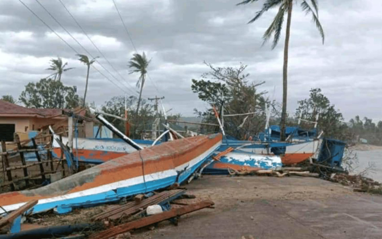 Un bote pesquero yace destrozado en la costa de Cagayan Valley después de que el super tifón Nando golpeara el norte de Filipinas con vientos destructores y fuertes lluvias, dejando una estela de daños en casas, medios de subsistencia e infraestructura. [Imagen: ADRA Filipinas]