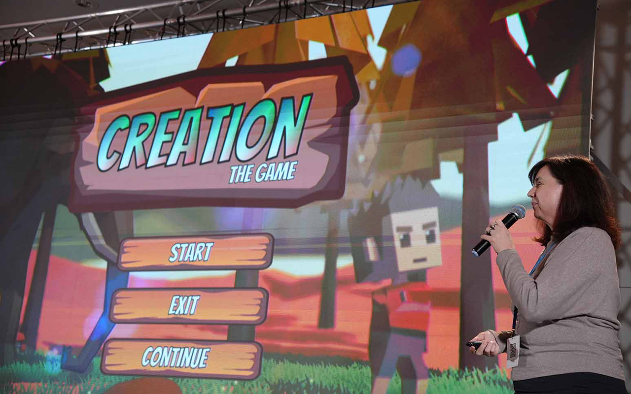 Creation: The Game incluye una visita a un museo, con actividades interactivas por completar, compartió Noemí Durán, directora del Instituto de Investigación en Geociencias de la División Intereuropea. [Fotografía: Marcos Paseggi, Adventist Review]